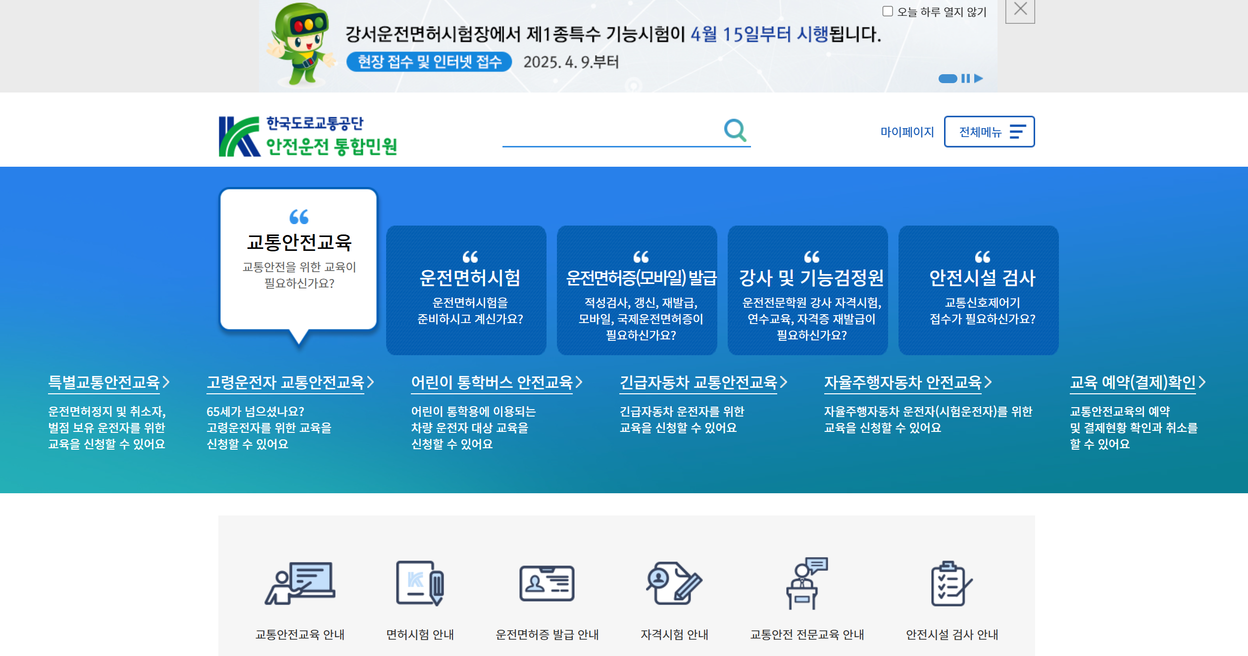 - 도로교통공단 안전운전 통합민원 사이트 접속