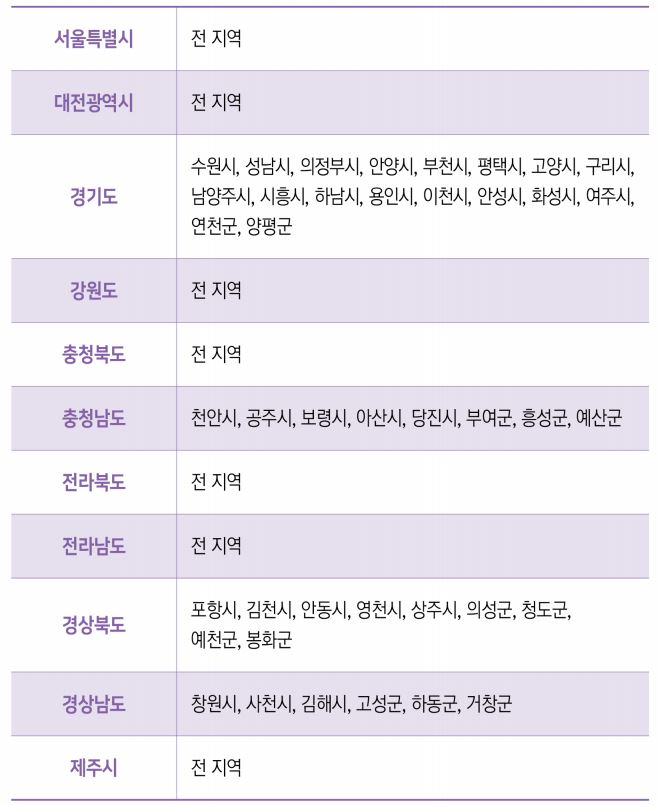 2021년 시범사업 대상 지역 목록